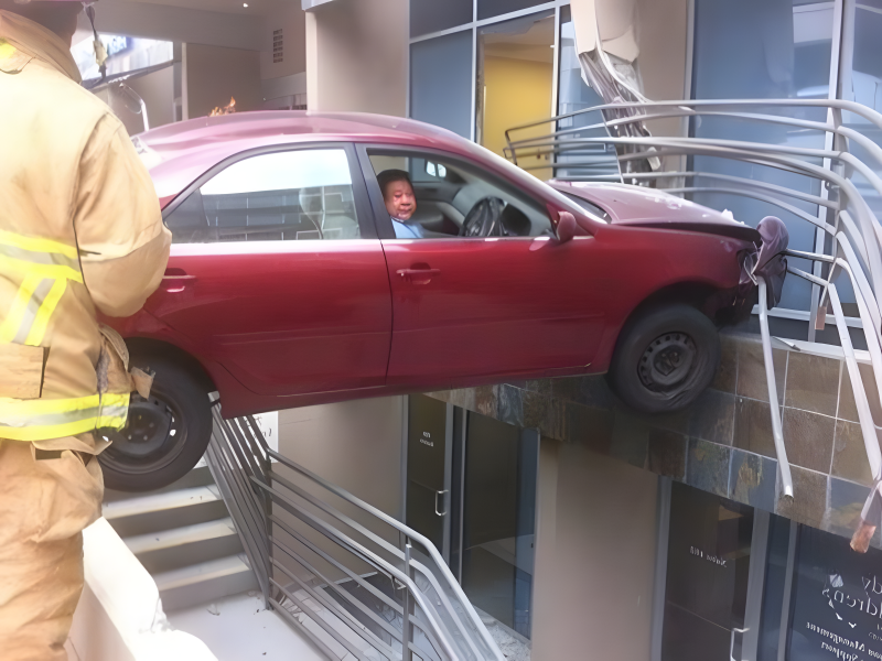 He accidentally parked in the worst possible spot, completely unaware of the chaos he'd create or the bewildered stares from spectators trying to figure out how he even got there.