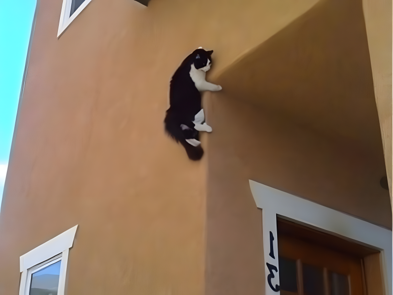 This cat looks like it leaped straight out of a Spider-Man comic, defying gravity with superhero flair as it scales walls with fearless elegance.