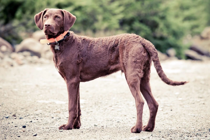 Energetic and loyal, Chesapeake Bay Retrievers mix friendliness with a reserved, protective temperament. Quick to defend their home, they adapt seamlessly to both family life and work, proving versatile and reliable.