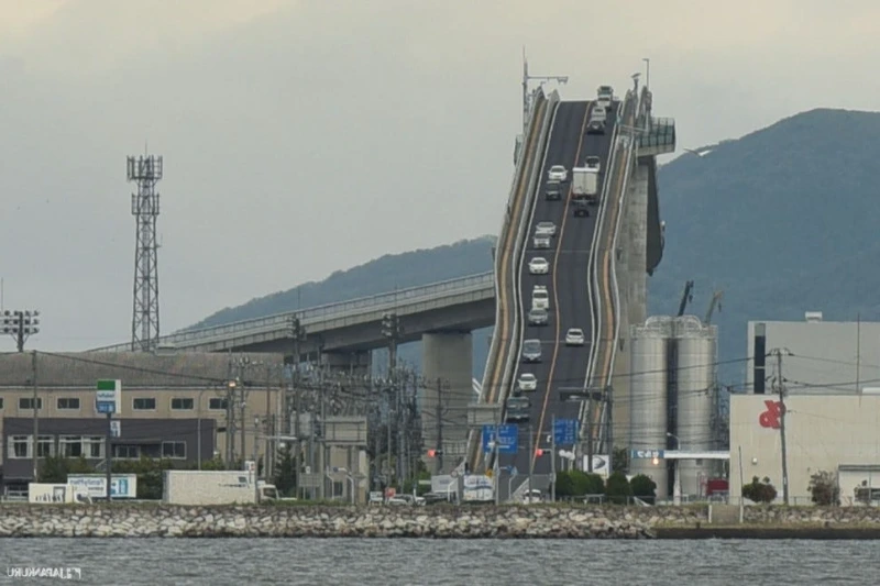 Famous for its seemingly vertical slope in photos, Japan’s Eshima Ohashi Bridge is often called “The Roller Coaster Bridge.” In reality, the gradient is a manageable 6.1%—exaggerated by camera perspective. Rising 44 meters to allow shipping passage, the bridge is both functional and fascinating. Driving across is smooth and safe, with stunning views of Lake Nakaumi. It has become a popular spot for photographers and sightseers alike.