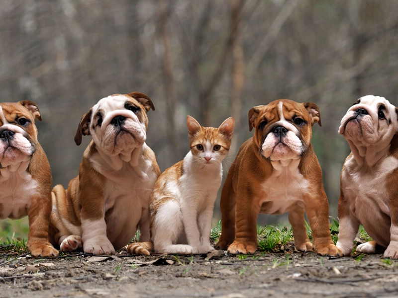 4 Dogs and one deserving spy. The challenge is to spot the hidden figure among the playful pups, made difficult by clever camouflage. This image transforms a simple gathering into a delightful game, inviting viewers to test their observation skills and enjoy the thrill of discovery.