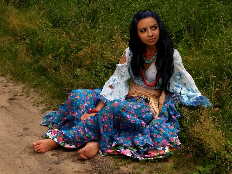 The iconic layered skirts worn by Romani women are symbolic of resilience and creativity. As hems wear down from travel, fabric from older garments is repurposed into vibrant patches. Each addition tells a story—transforming the skirt into a wearable chronicle of journey, struggle, and celebration.
