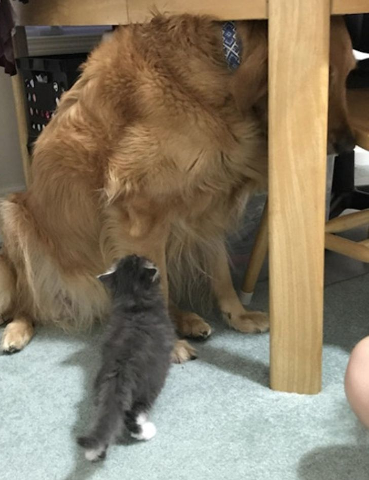 Despite the massive size difference, the tiny kitten has managed to become the boss of the house, much to the amusement of everyone who witnesses their interactions. This amusing reversal of roles shows that courage and attitude often matter more than size, and animals never fail to surprise us with their personalities.