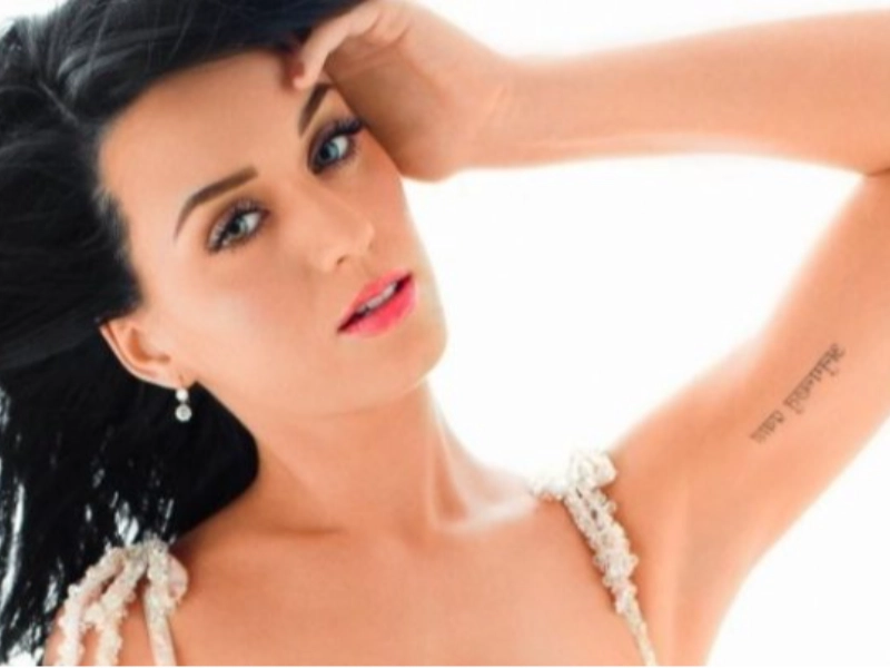 Katy Perry’s tattoos range from playful (Hello Kitty, strawberries) to spiritual (“Jesus”). Each reflects a different dimension of her personality—fun, faith, and fantasy. Colorful, quirky, and full of character.