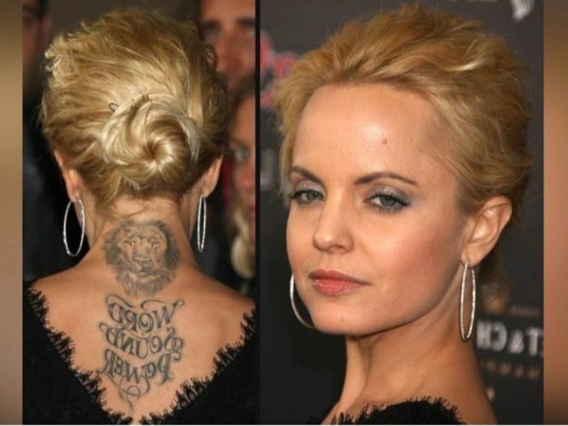 Mena Suvari’s lion tattoo proclaims “Word Sound Power”—a mantra of strength and the transformative power of voice. A bold declaration of inner power.