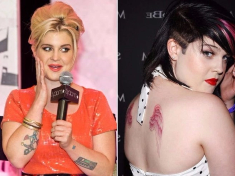 Kelly Osbourne’s angel wings symbolize protection and freedom; her synthesizer tattoo echoes her passion for music. Two tattoos, one harmonious story.