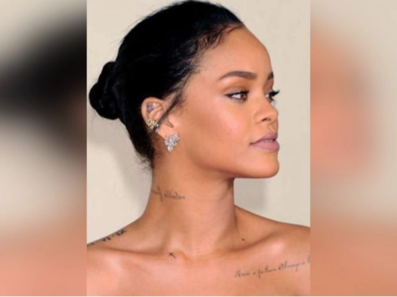 Among Rihanna’s collection is a reversed inscription: “Any failure is always a lesson.” Located along her collarbone, it serves as a personal mantra of resilience. A tiny star behind her ear adds a touch of playful mystery to her curated ink.