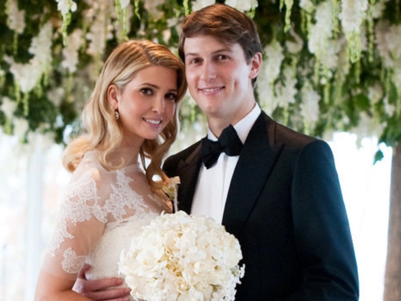 Ivanka Trump chose a Vera Wang dress with subtle detailing and a sculpted outline. The polished design and expert craftsmanship produced a radiant, classic bridal image.